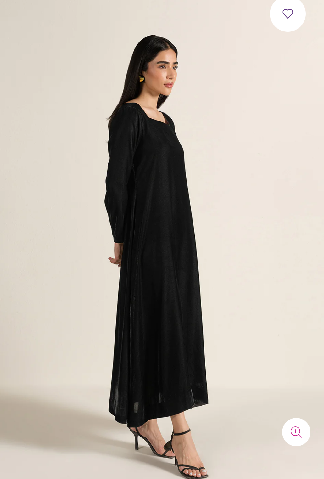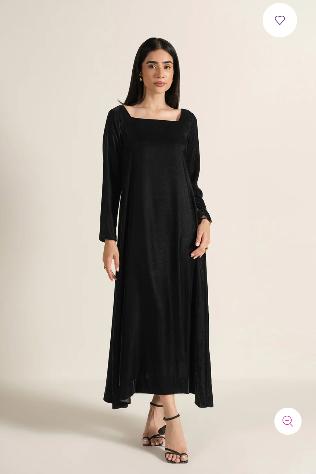 - Crafted in soft velvet, this article features a square neckline, straight full-length sleeves, and an A-line silhouette for an elegant look.