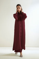Obsessed with this set! The long shirt with a delicate ban neckline and button details feels so polished, and the balloon sleeves with cutwork embroidery add just the right touch of chic. Super easy to style with the matching culottes.