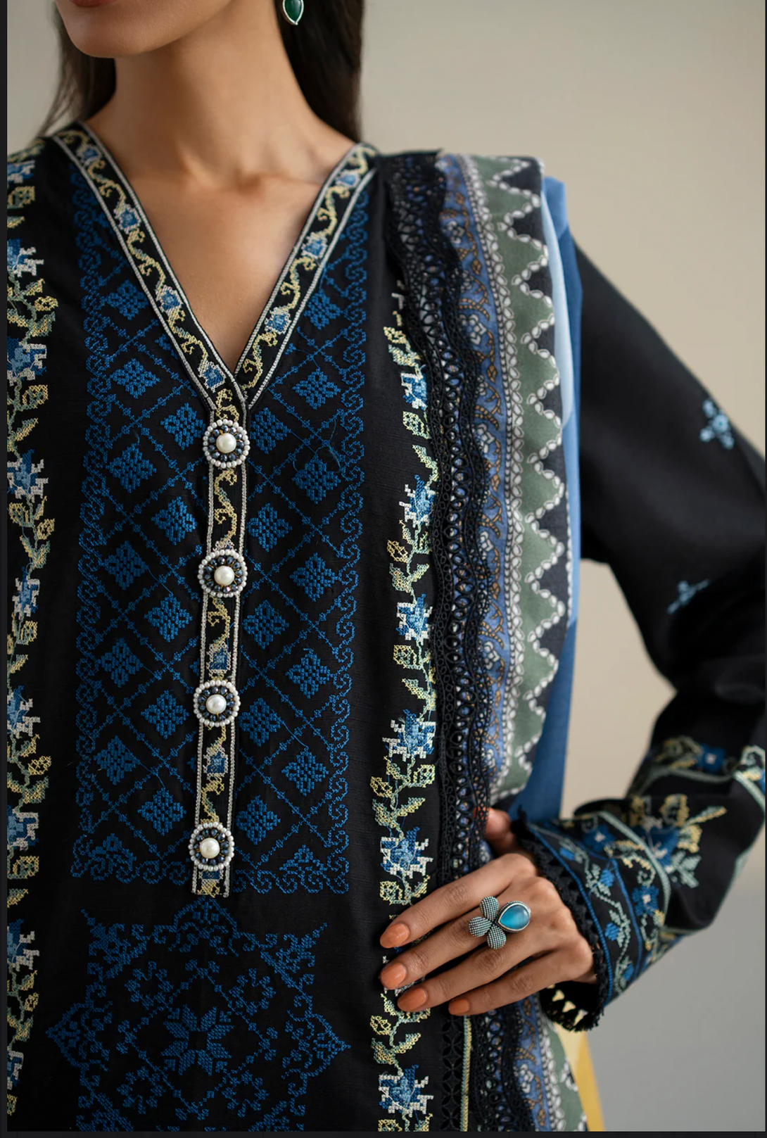-Embroidered Dyed long slb Karandi Shirt front Center Panel 1 Pc