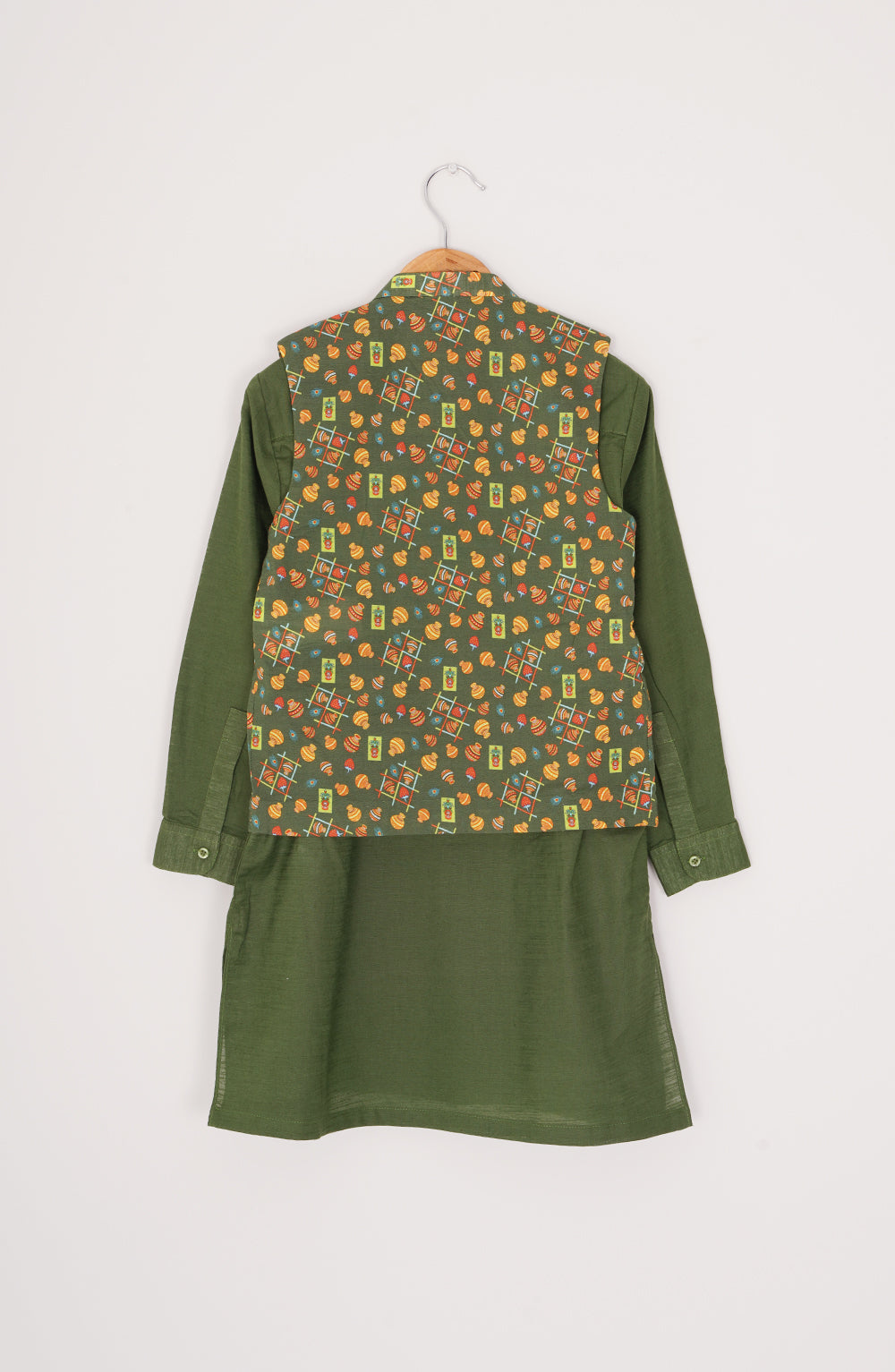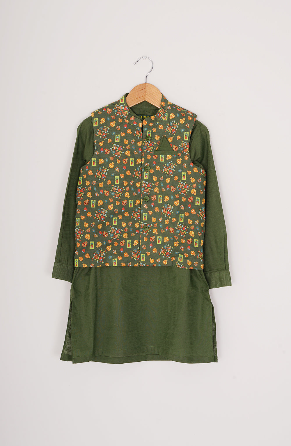 Bright and charming, the Shahbaleh Printed Waistcoat 3-Piece Suit in green brings cultural flair to your little one’s look with comfort and style. This thoughtfully crafted ensemble includes a printed waistcoat, kurta, and matching trousers—all made from breathable Slub Khaddar fabric for all-day ease.