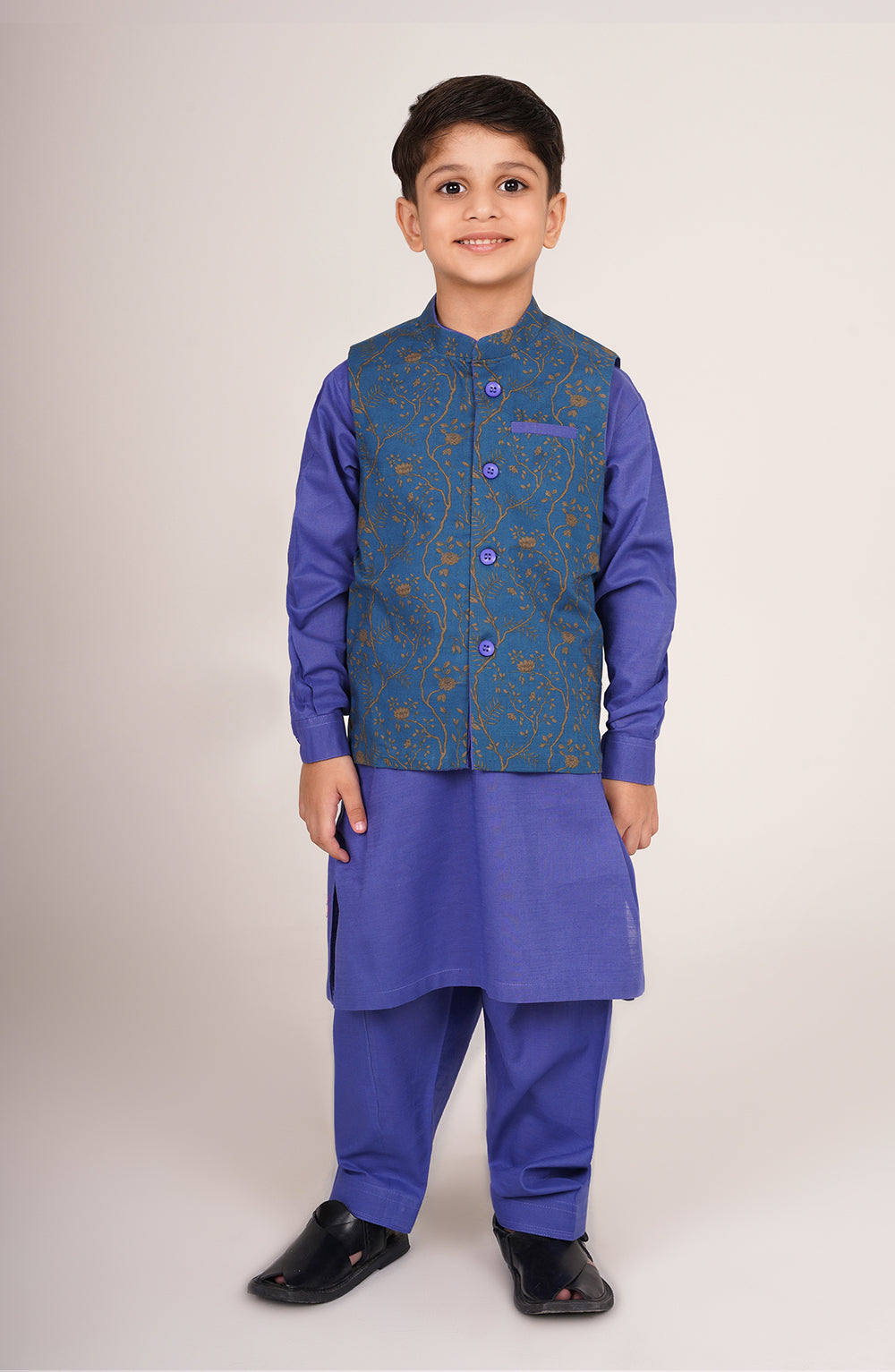 A charming Printed waistcoat & 3-piece suit for Boys, ideal for festive or formal occasions.