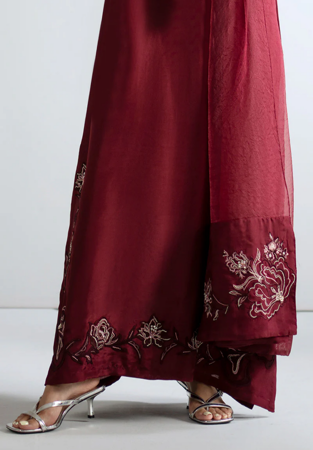 - Organza dupatta with medium silk patch adorned with delicate adda work.