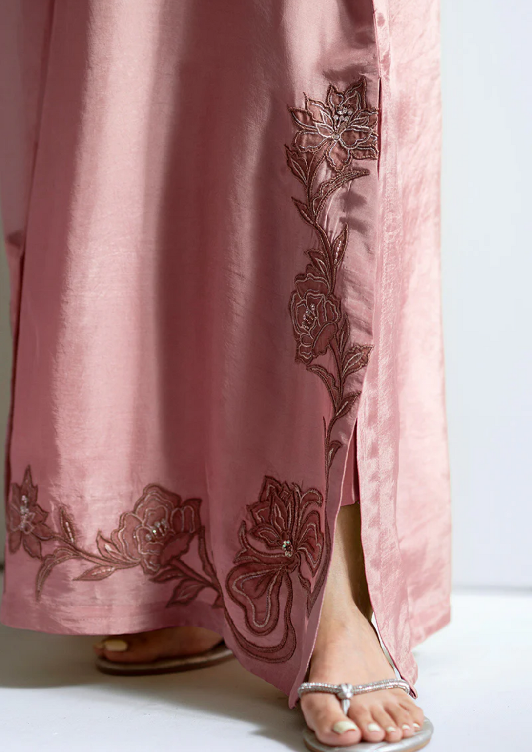 - Heavily embellished hem and side slits adorned with exquisite handwork