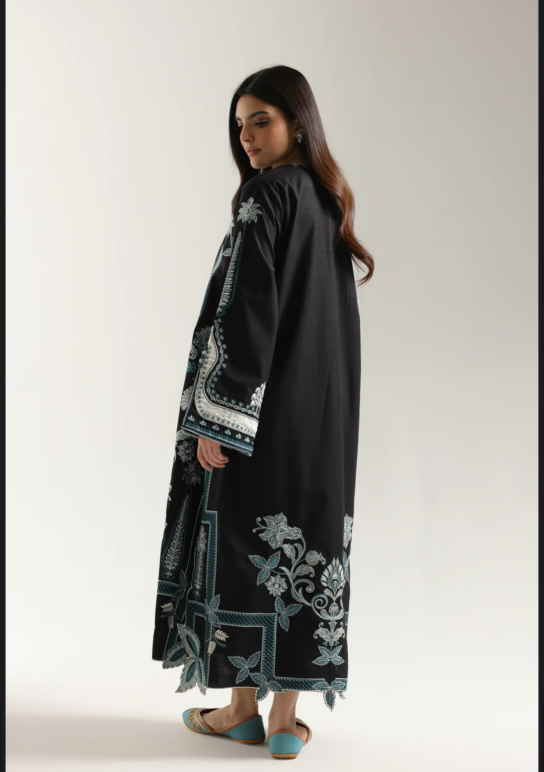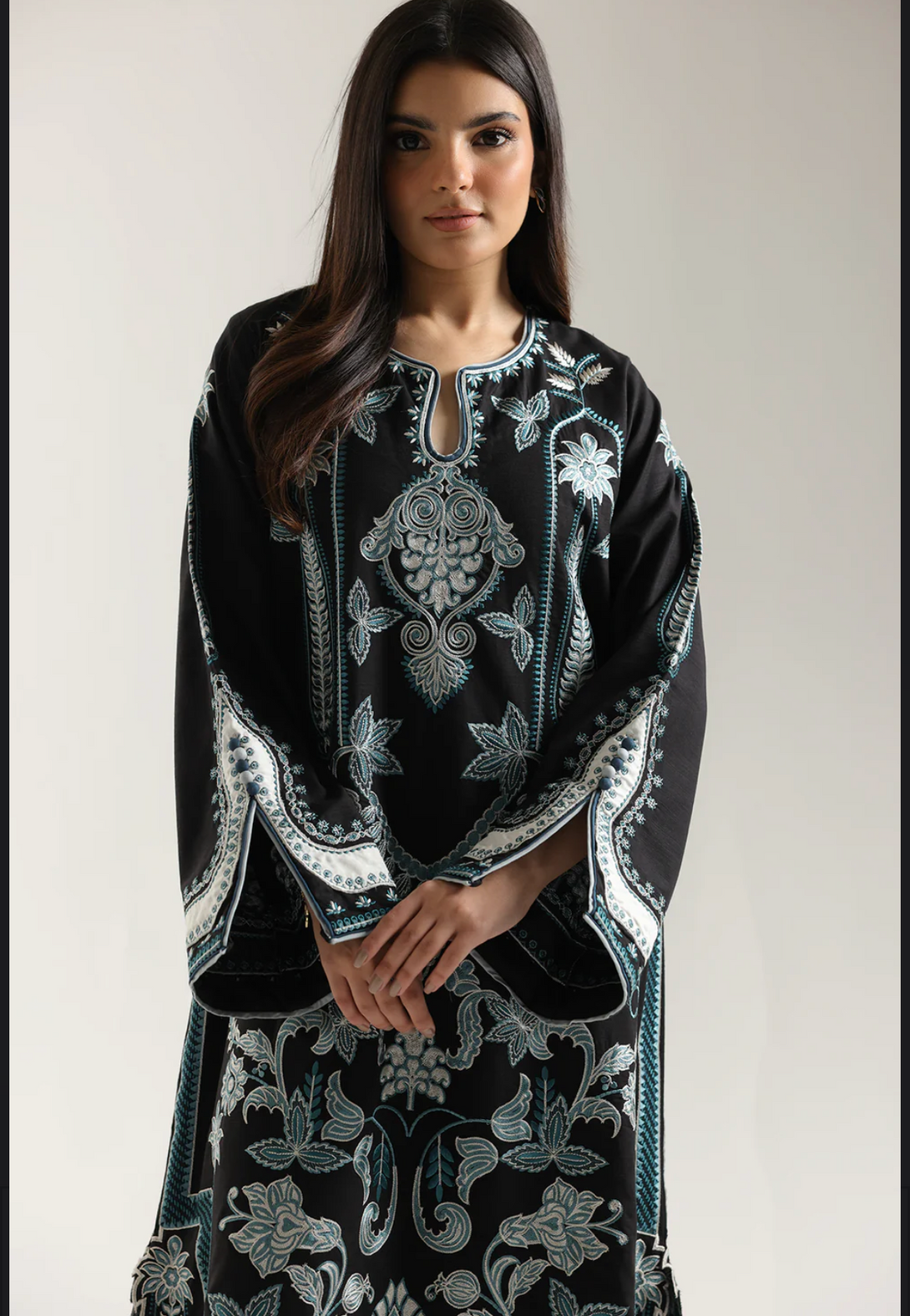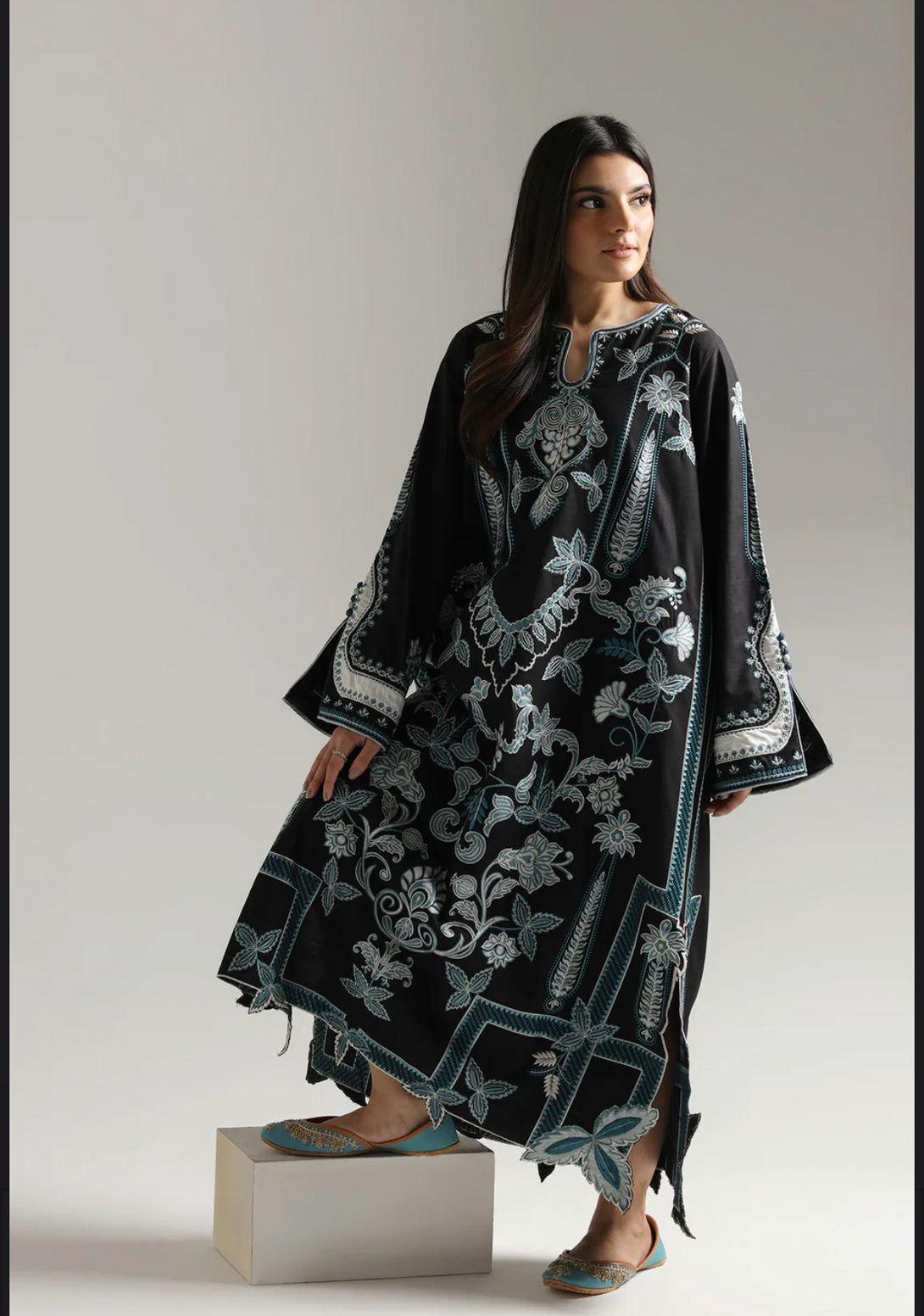 SHIRT - A LINE HEM - BAN NECK WITH SLIT - FLARED SLEEVES - LONG LENGTH
