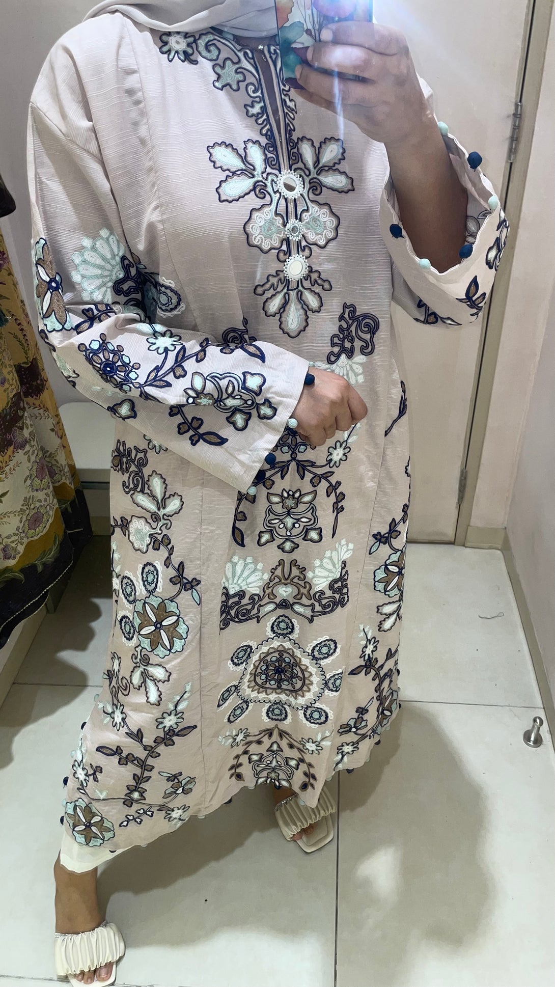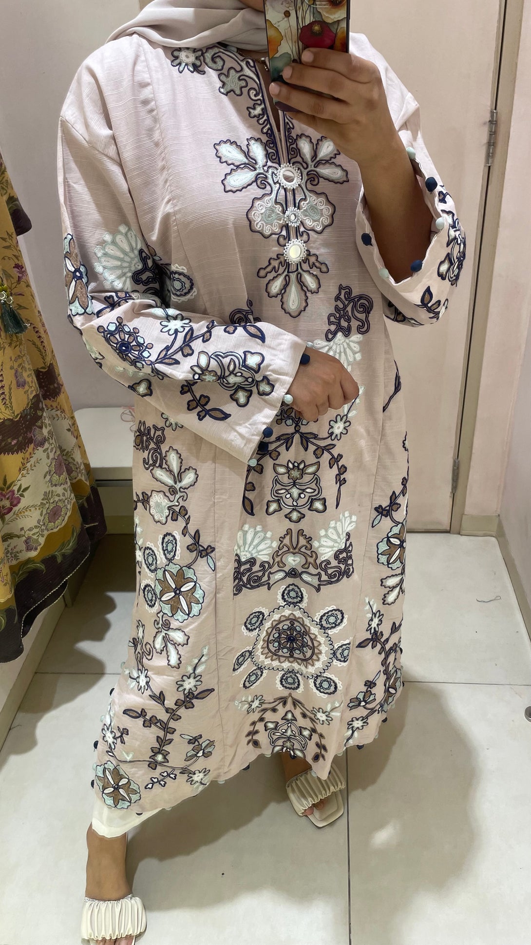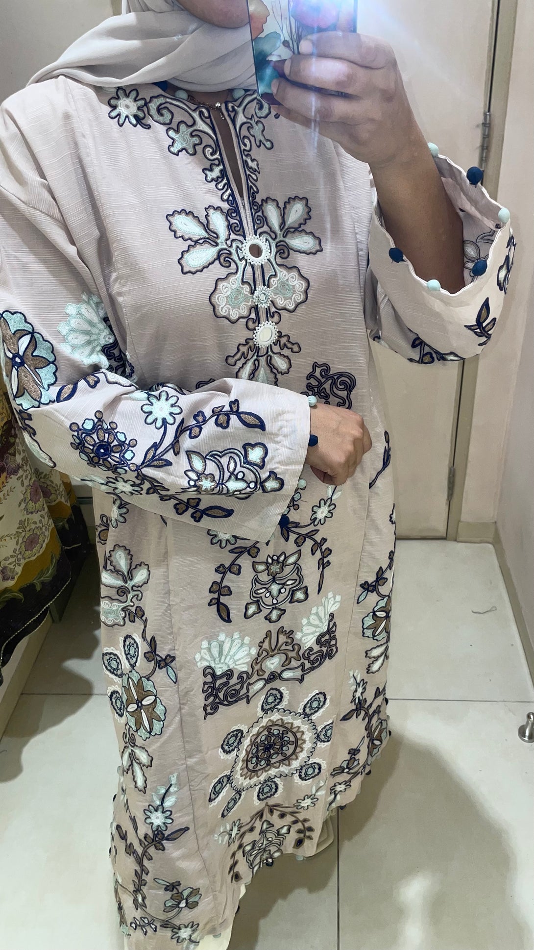DRESS - STRAIGHT FIT - ROUND NECK WITH SLIT - FULL SLEEVES - LONG LENGTH