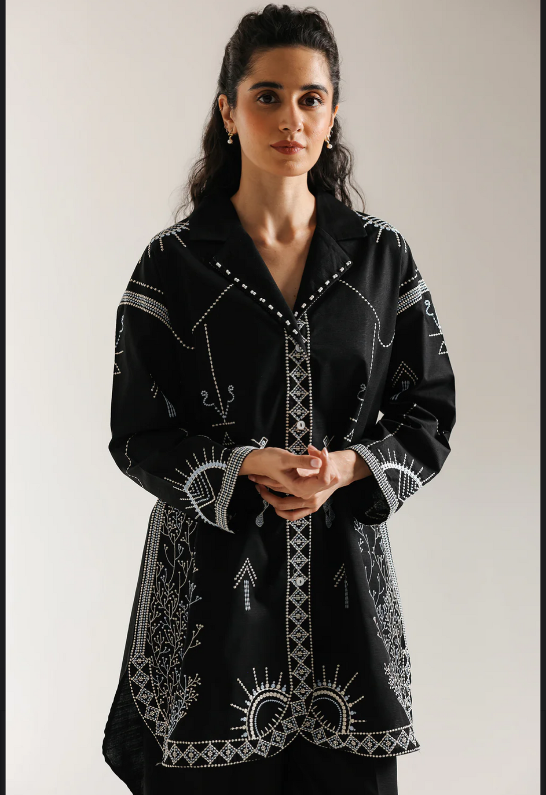 SHIRT - RELAX FIT - BAN COLLAR WITH PLACKET - FLARED SLEEVES - ROUND HEM - SHORT LENGTH
