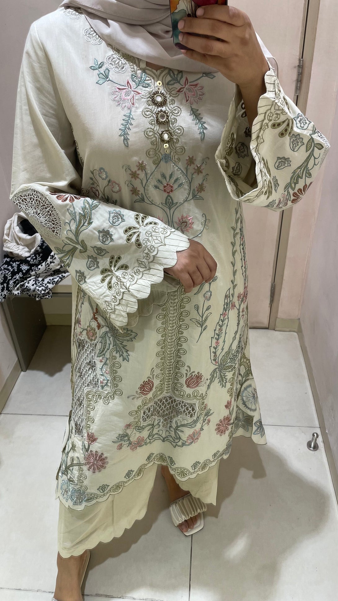 SHIRT - ALINE FIT - SCALLOPED V NECK - FLARED SLEEVES - SCALLOPED HEM - REGULAR LENGTH