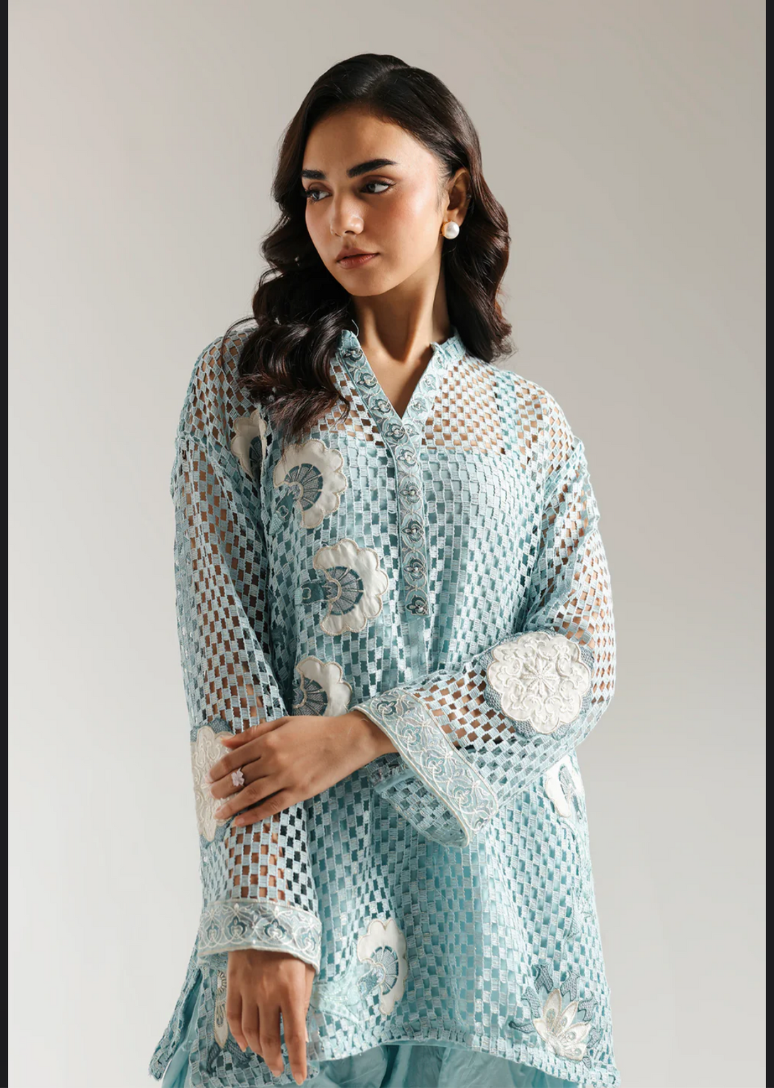 SHIRT – A LINE FIT – V NECK - FULL SLEEVES - SCALLOPED HEM - SHORT LENGTH