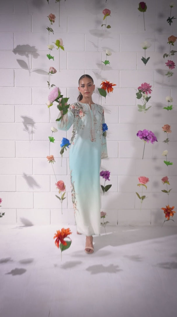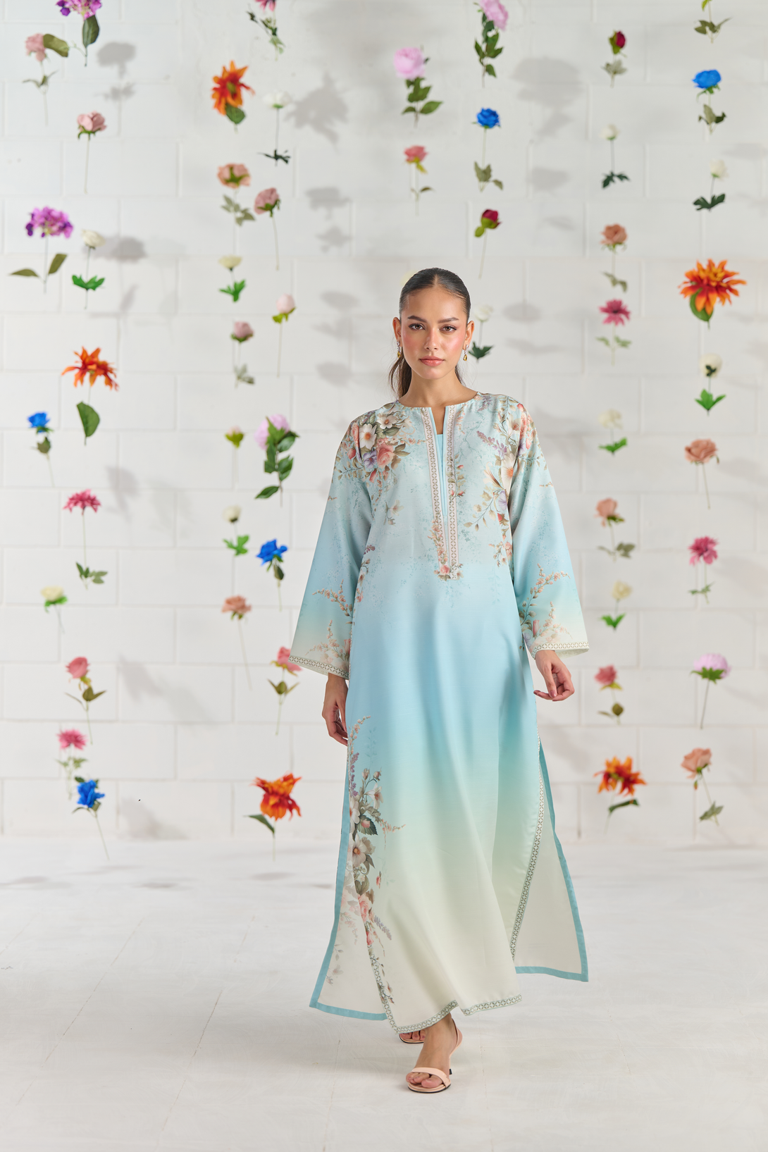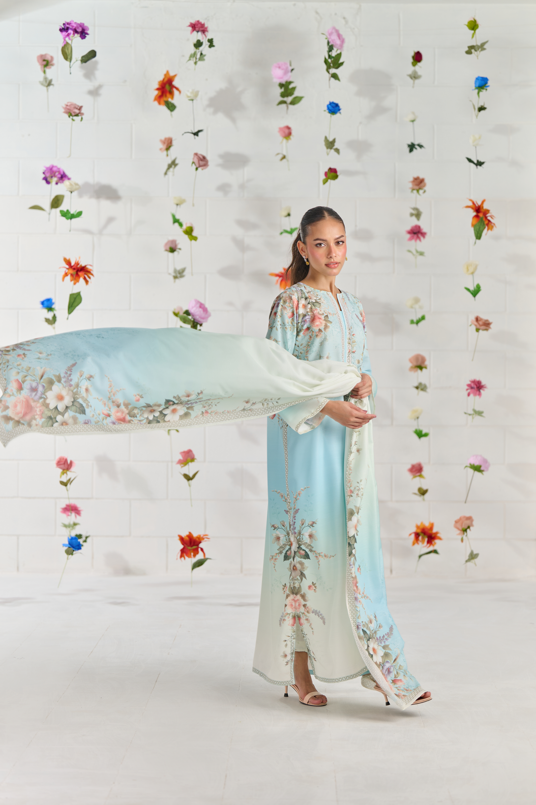 Description: Drape yourself in Light Blue Ombre Kaftan– a classic outfit that speaks volumes in style.