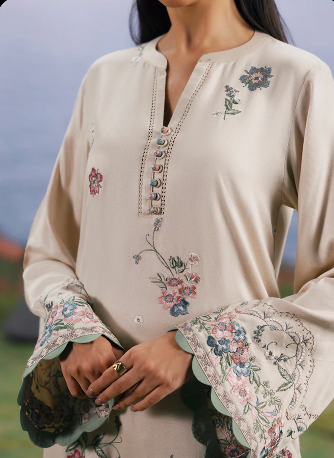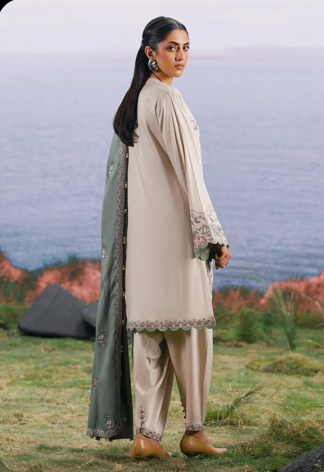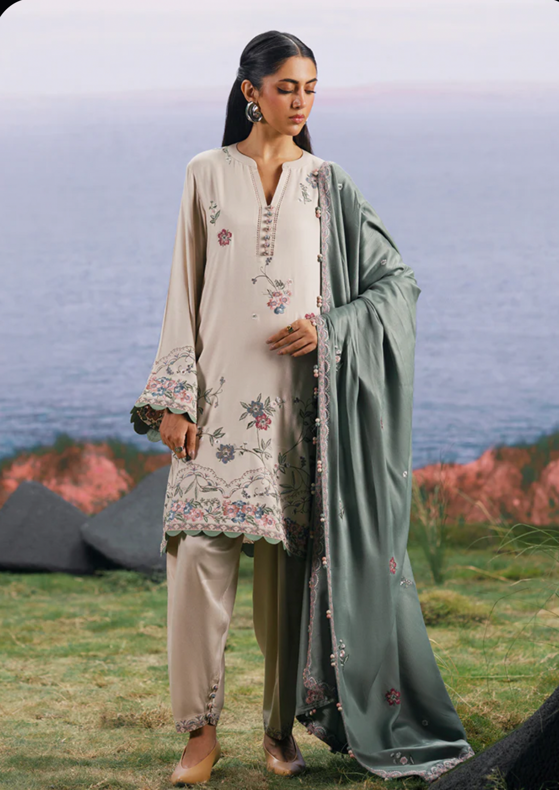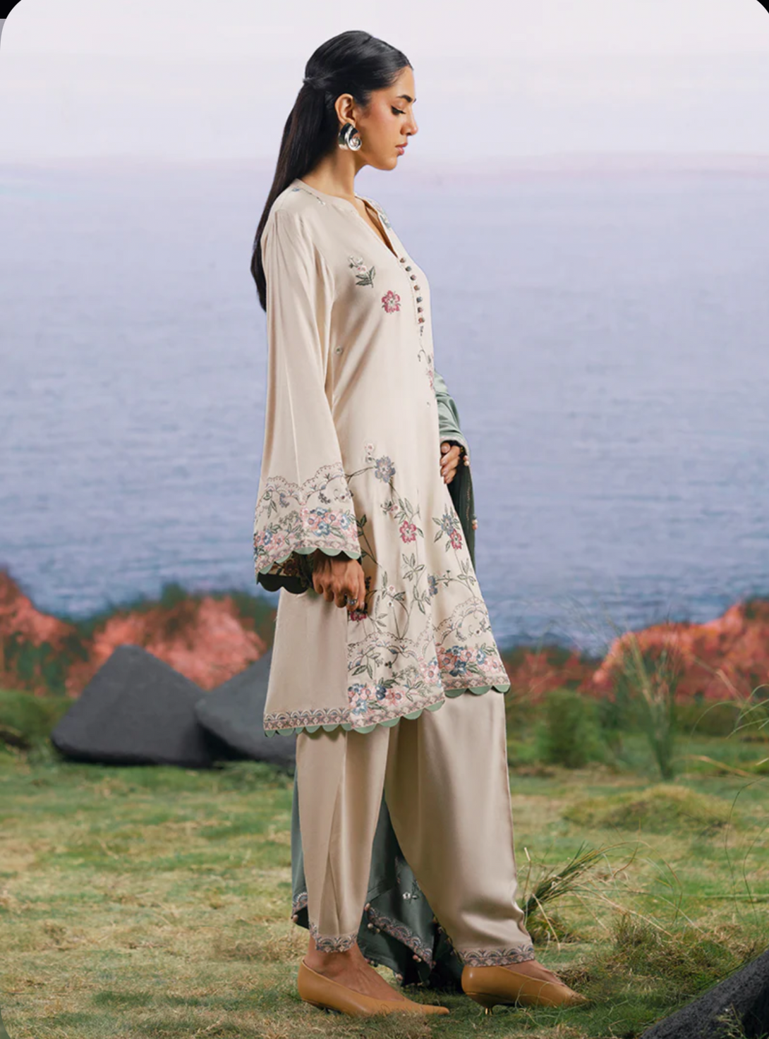 Golnar in Ivory/Green from our Winterkari '25 Collection. An embroidered twill viscose 3pc unstitched outfit.