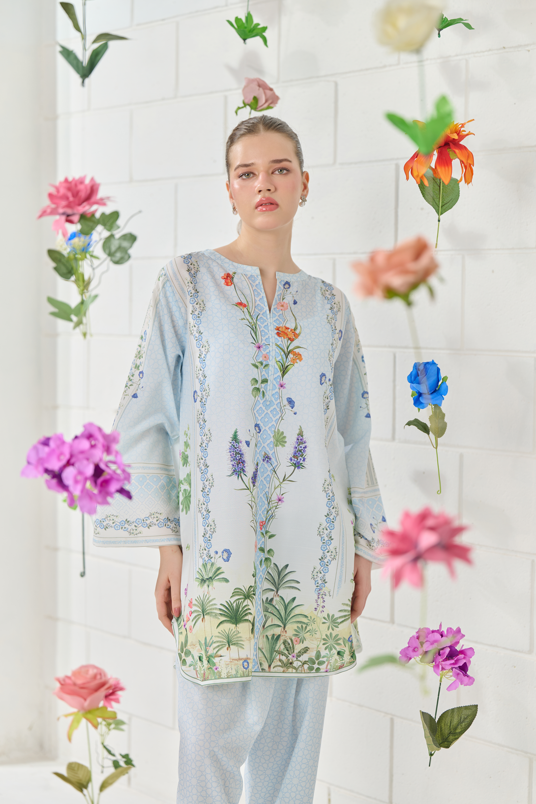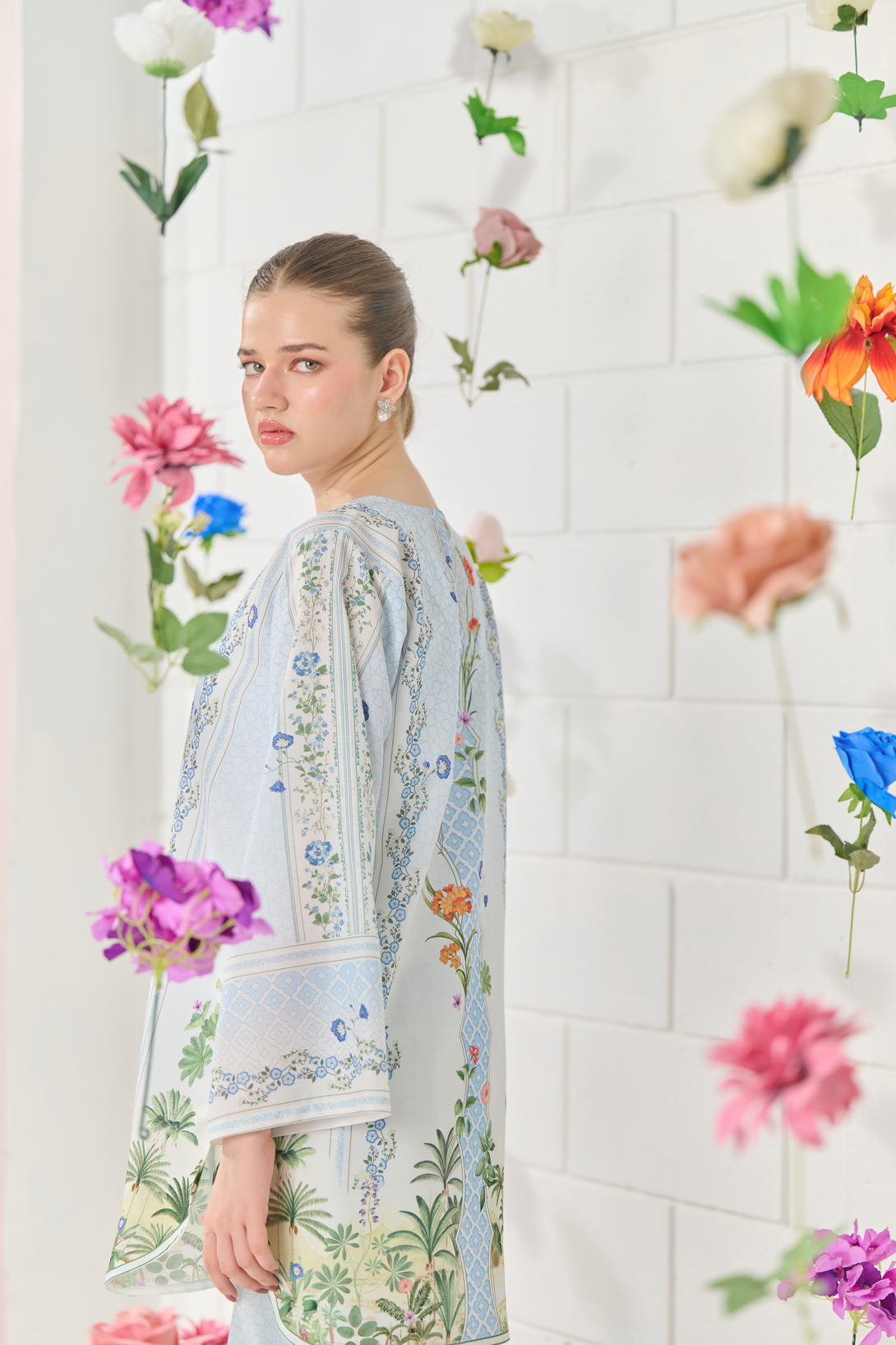 Color: A green base elegantly showcases a delicate floral print, bringing a natural and refreshing vibe to the design.
