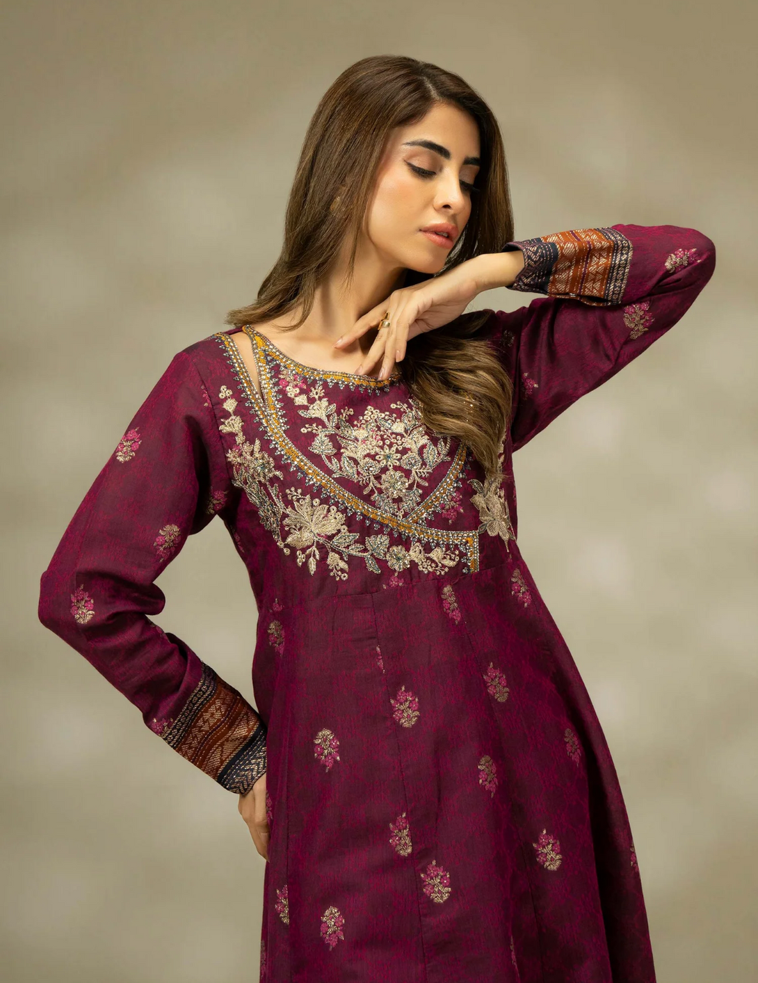 - Dyed embroidered angrakha style shirt