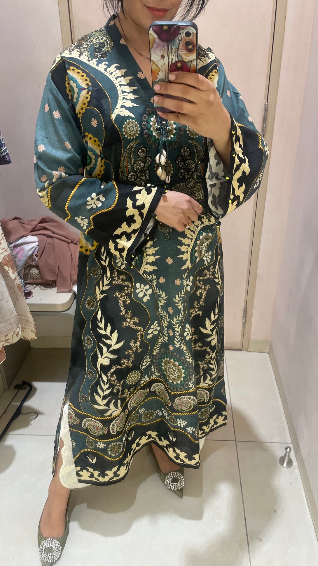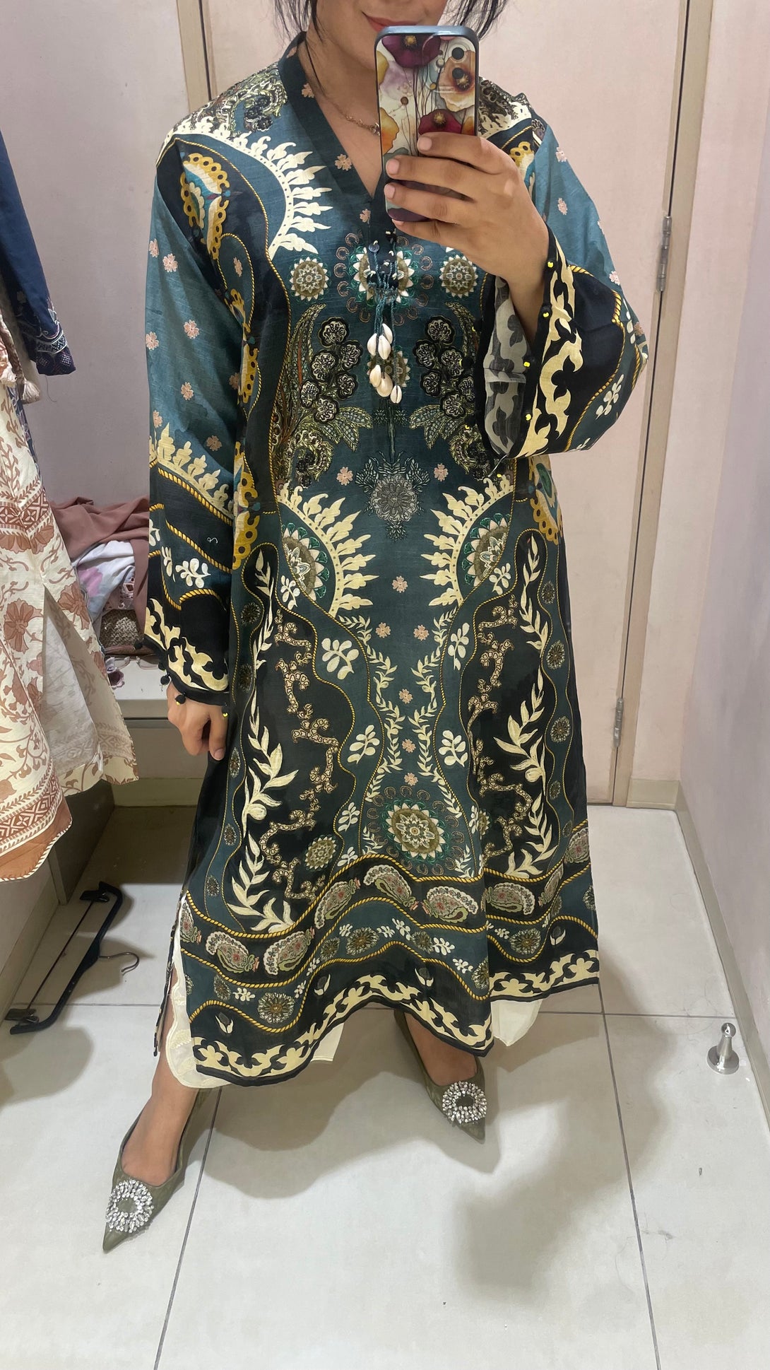 SHIRT - A LINE FIT - ROUND NECK WITH SLIT - ROUND HEM - FLARED SLEEVES - LONG LENGTH