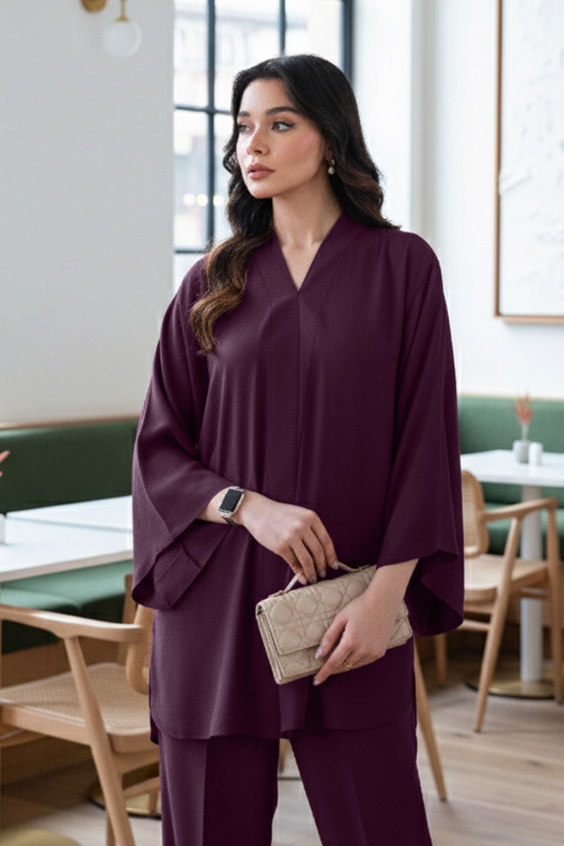 From coffee runs to grocery hauls, this co-ord set keeps you effortlessly polished — featuring a relaxed V-neckline, flared sleeves, and easy-fit culottes for all-day comfort.