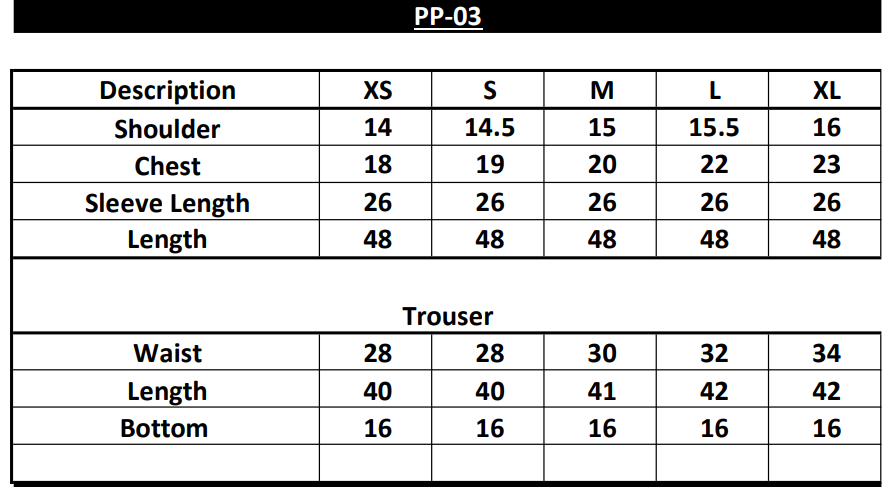 For size chart see photo album.