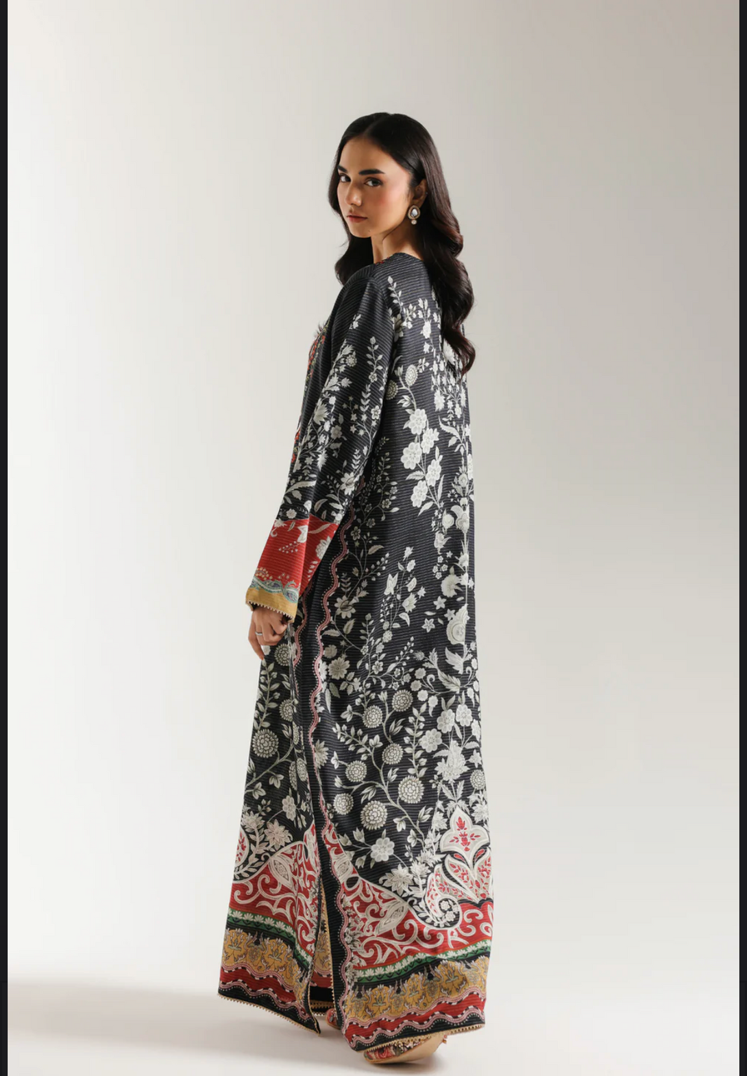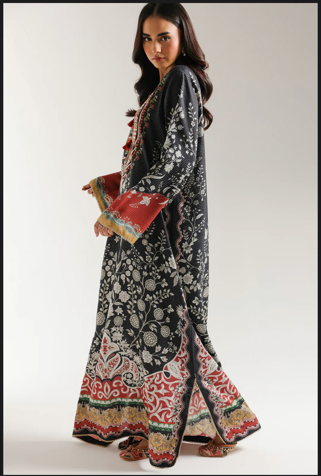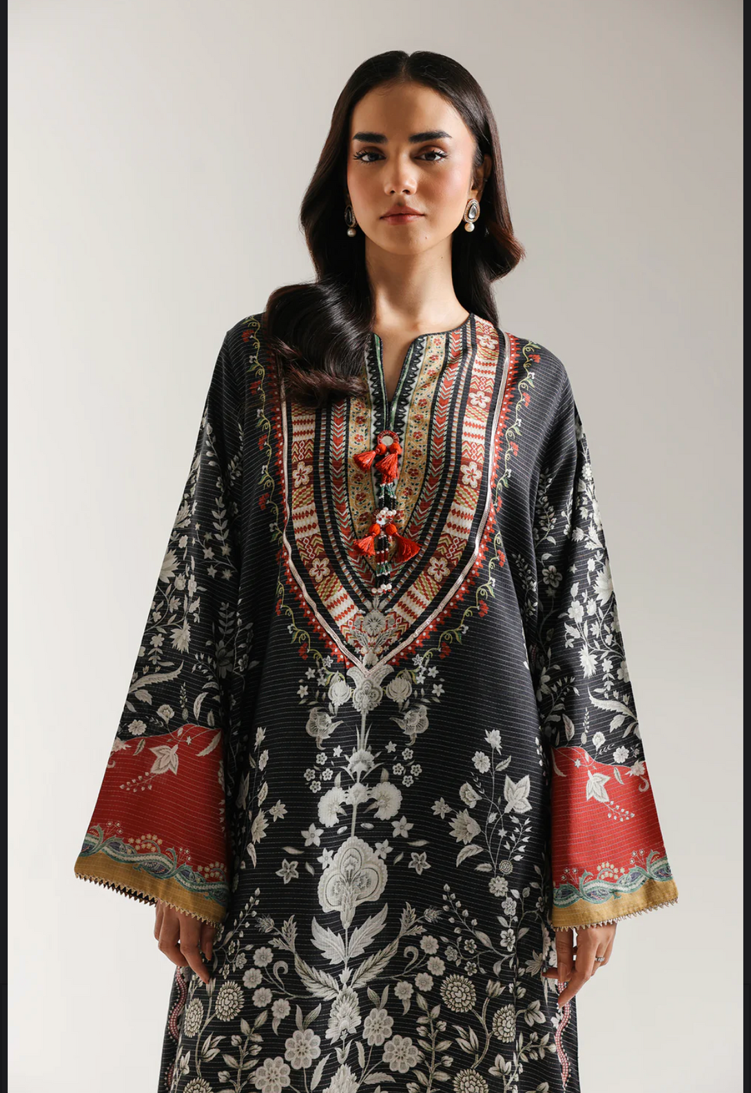 SHIRT - A LINE HEM - BAN NECK WITH SLIT - FLARED SLEEVES - LONG LENGTH