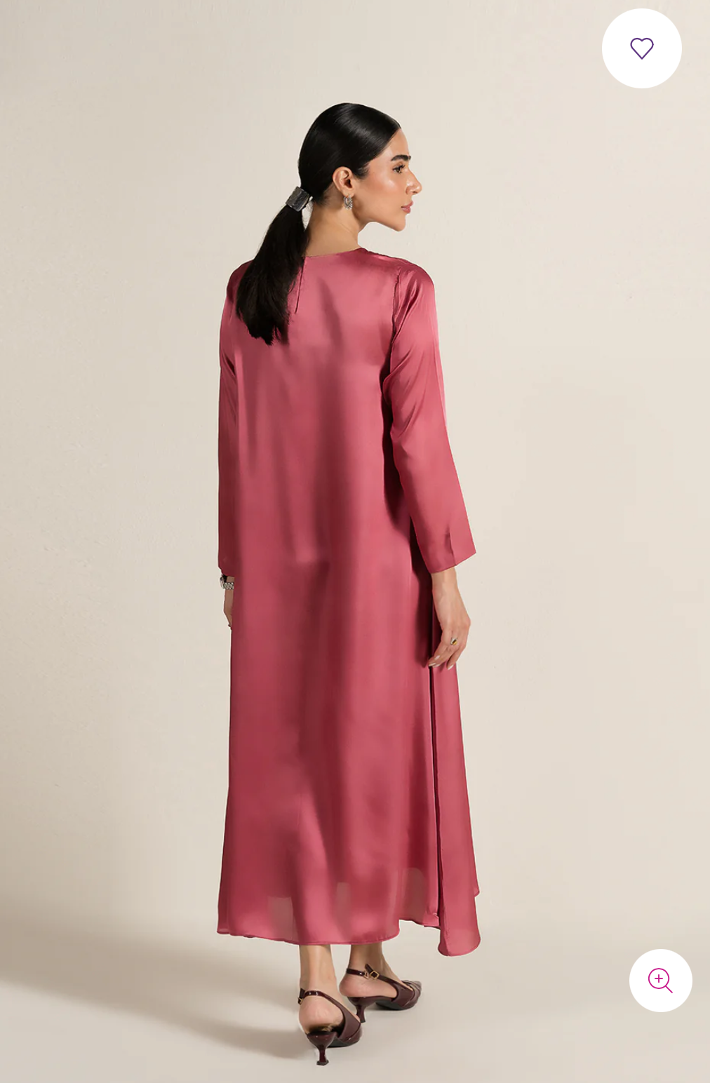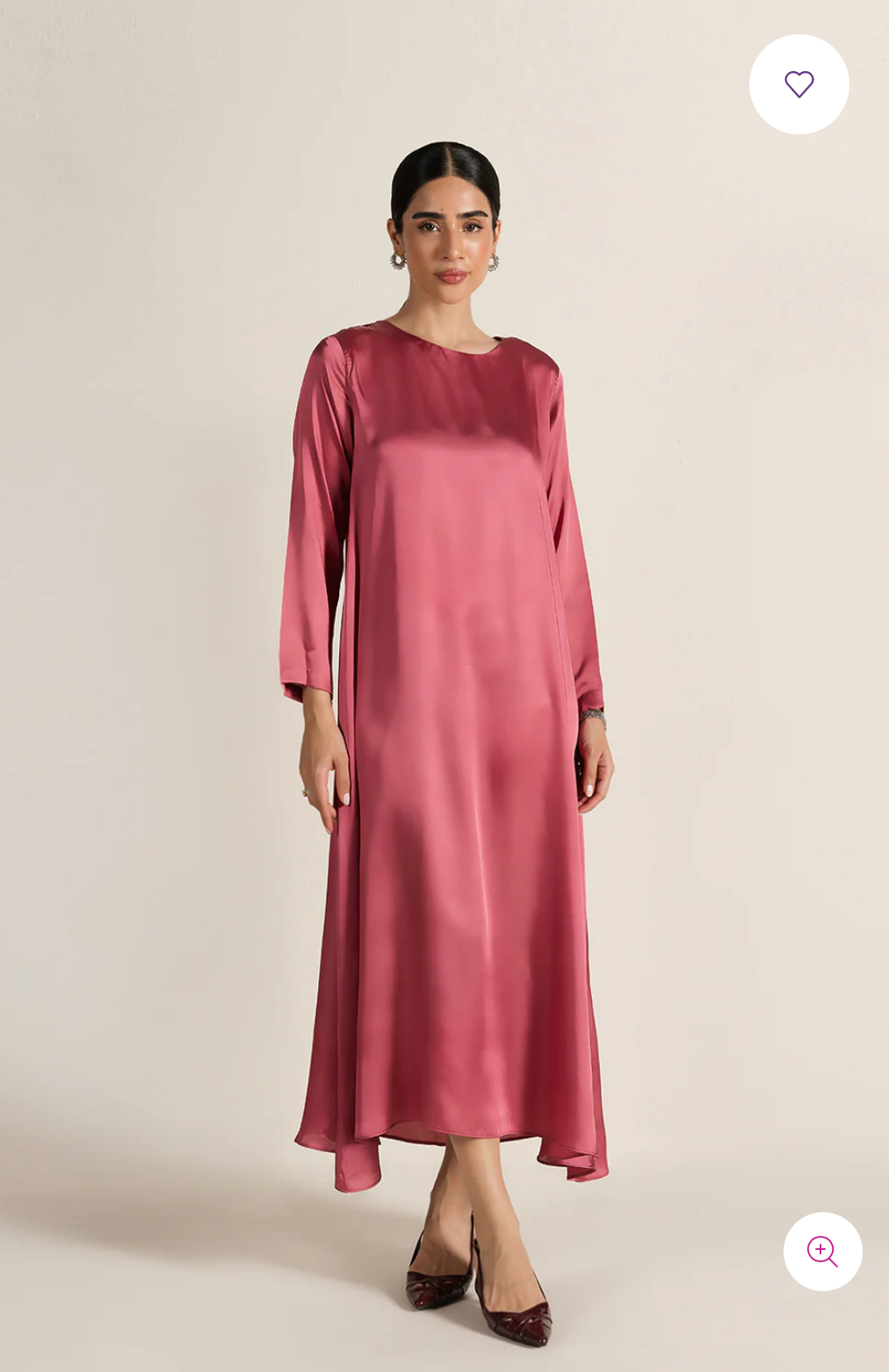 - Crafted in soft charmeuse silk, this dress features a crew neckline with a back slit, full-length sleeves, and a flared bottom for a graceful, timeless silhouette.