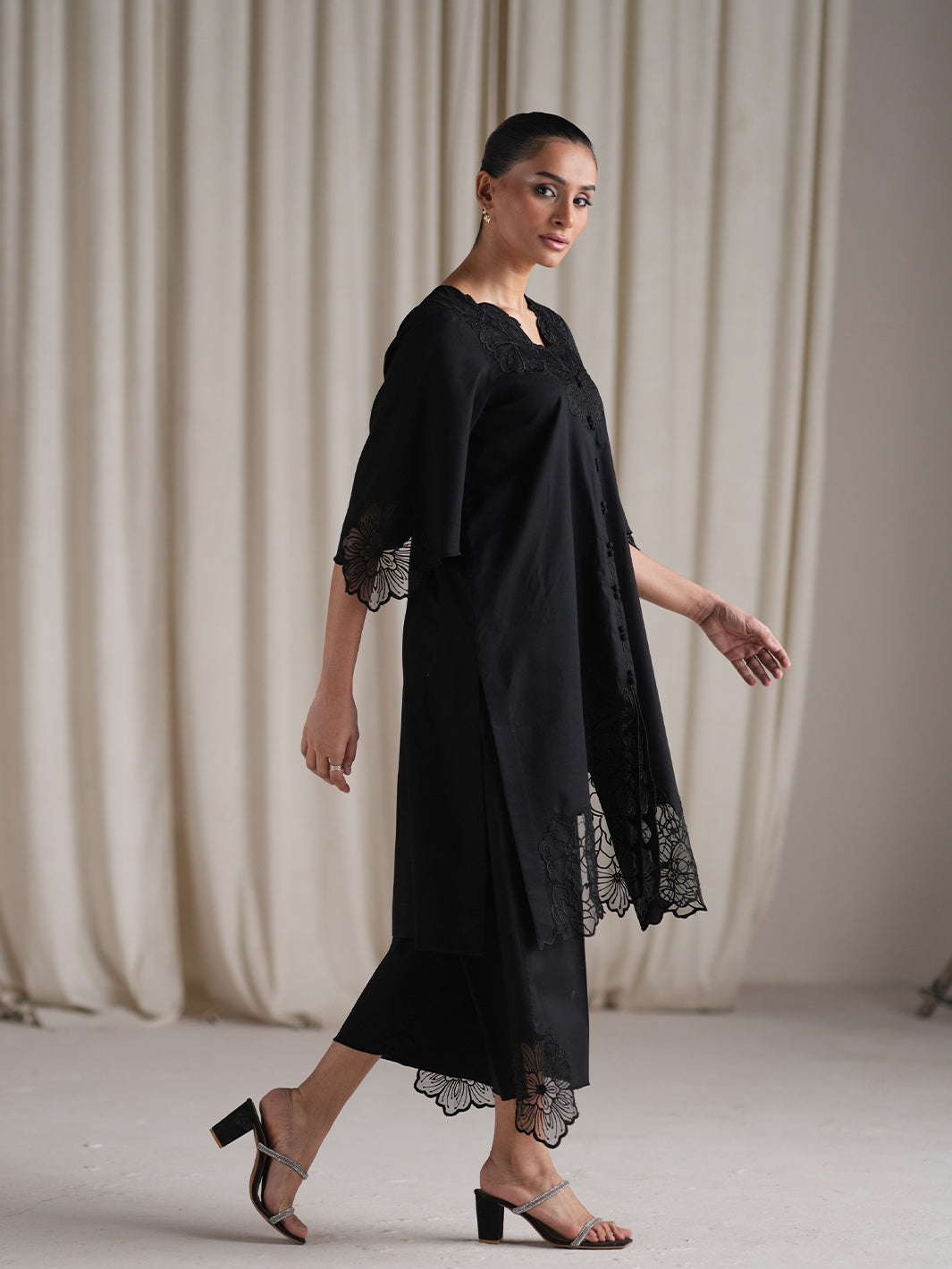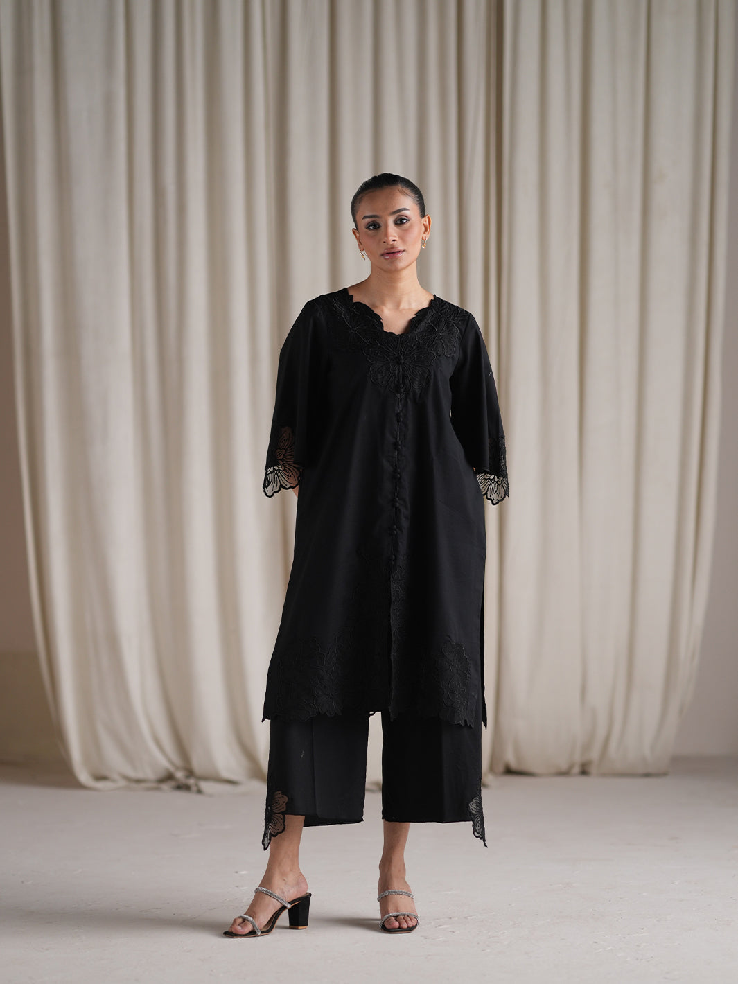 minimal embroidery that feels like an echo of elegance. This is for the woman who dresses for herself. Who knows that black isn't basic it's powerful. Let your energy flow, let your light hide in shadows. From the Essence Collection, made for